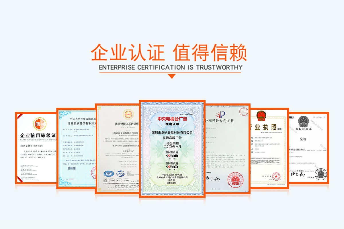 深圳市皇迪智能科技有限公司,是一家集產(chǎn)品研發(fā)、制造、銷售、安裝、售后于一體的全產(chǎn)業(yè)鏈公司,我司專注于酒店刷卡鎖、公寓藍(lán)牙密碼鎖、電子鎖、密碼鎖研發(fā),生產(chǎn),銷售.是國(guó)家高新技術(shù)企業(yè),公司已通過ISO9001/2015標(biāo)準(zhǔn)認(rèn)證,并擁有多項(xiàng)國(guó)家實(shí)用新型專利、外觀專利及計(jì)算機(jī)軟件著作權(quán); 皇迪玻璃門鎖廠家一直秉承“以顧客為中心,以人為本,長(zhǎng)期艱苦奮斗”的經(jīng)營(yíng)理念,為全球每一位消費(fèi)者提供舒適,便捷,安全的高品質(zhì)生活。